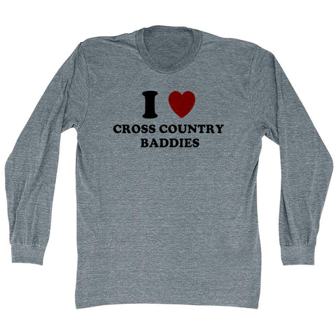 Product Story: I Heart Cross Country Baddies Adult Tri-Blend Long Sleeve T-shirtProduct Description: I Heart Cross Country Baddies Adult Tri-Blend Long Sleeve T-shirt Tri-Blend (Polyester, Rayon, Cotton) Buttery Smooth Soft Material Medium Weight Tee Soft Hand Print