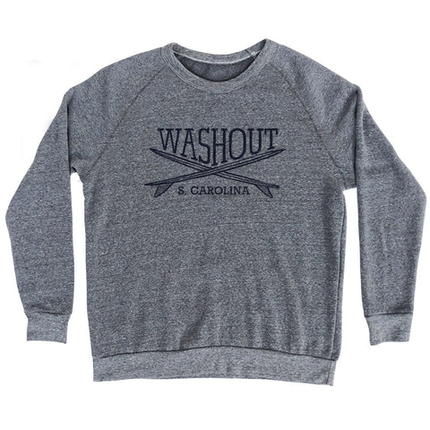 Product Story: Washout Surf Break Crossed Surf Board Surfing Destination Adult Tri-Blend SweatshirtProduct Description: Washout Surf Break Crossed Surf Board Surfing Destination Adult Tri-Blend Sweatshirt Tri-Blend (Polyester, Rayon, Cotton) Buttery Smooth Soft Material Medium Weight Tee Soft Hand Print