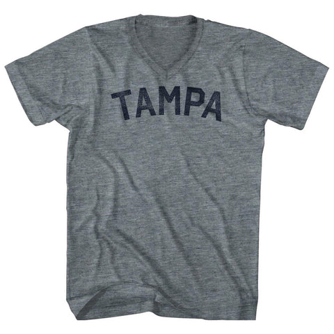 Product Story: Tampa Adult Cotton V-neck T-shirtProduct Description: Tampa Adult Cotton V-neck T-shirt Tri-Blend (Polyester, Rayon, Cotton) Buttery Smooth Soft Material Medium Weight Tee Soft Hand Print