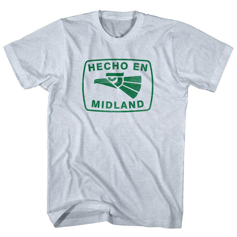 Product Story: Hecho En Midland Eagle Adult Tri-Blend T-shirtProduct Description: Hecho En Midland Eagle Adult Tri-Blend T-shirt Tri-Blend (Polyester, Rayon, Cotton) Buttery Smooth Soft Material Medium Weight Tee Soft Hand Print