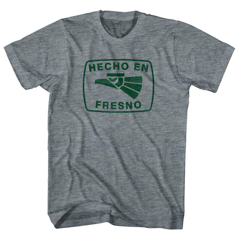 Product Story: Hecho En Fresno Eagle Adult Tri-Blend T-shirtProduct Description: Hecho En Fresno Eagle Adult Tri-Blend T-shirt Tri-Blend (Polyester, Rayon, Cotton) Buttery Smooth Soft Material