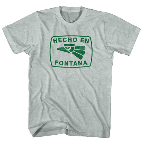 Product Story: Hecho En Fontana Eagle Adult Tri-Blend T-shirtProduct Description: Hecho En Fontana Eagle Adult Tri-Blend T-shirt Tri-Blend (Polyester, Rayon, Cotton) Buttery Smooth Soft Material