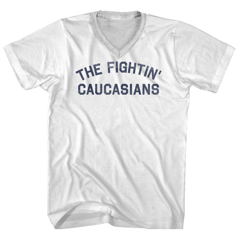 Product Story: The Fightin' Caucasians Adult Cotton V-neck T-shirtProduct Description: The Fightin' Caucasians Adult Cotton V-neck T-shirt Tri-Blend (Polyester, Rayon, Cotton) Buttery Smooth Soft Material Medium Weight Tee Soft Hand Print