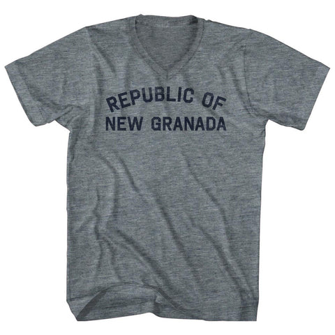 Product Story: Republic of New Granada Adult Tri-Blend V-neck T-shirtProduct Description: Republic of New Granada Adult Tri-Blend V-neck T-shirt Tri-Blend (Polyester, Rayon, Cotton) Buttery Smooth Soft Material Medium Weight Tee Soft Hand Print