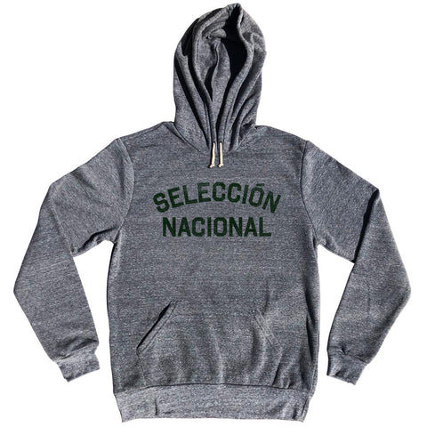 Product Story: Seleccion Nacional Hunter Green Text Cotton-Poly Blend HoodieProduct Description: Seleccion Nacional Hunter Green Text Cotton-Poly Blend Hoodie 6.5 oz. Tri-Blend Cozy Soft Material Pre-Shrunk Set-in sleeves Pouch front pocket Ribbed bottom band and sleeve cuffs
