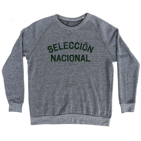 Product Story: Seleccion Nacional Hunter Green Text Adult Tri-Blend SweatshirtProduct Description: Seleccion Nacional Hunter Green Text Adult Tri-Blend Sweatshirt Tri-Blend (Polyester, Rayon, Cotton) Buttery Smooth Soft Material Medium Weight Tee Soft Hand Print