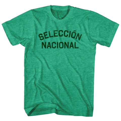 Product Story: Seleccion Nacional Hunter Green Text Adult Tri-Blend T-shirtProduct Description: Seleccion Nacional Hunter Green Text Adult Tri-Blend T-shirt Tri-Blend (Polyester, Rayon, Cotton) Buttery Smooth Soft Material