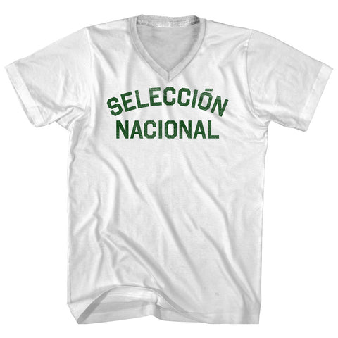Product Story: Seleccion Nacional Hunter Green Text Adult Cotton V-neck T-shirtProduct Description: Seleccion Nacional Hunter Green Text Adult Cotton V-neck T-shirt Tri-Blend (Polyester, Rayon, Cotton) Buttery Smooth Soft Material Medium Weight Tee Soft Hand Print