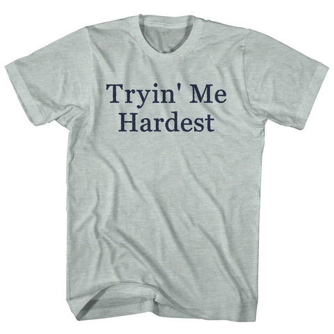 Product Story: Tryin' Me Hardest Rage Font Adult Tri-Blend T-shirtProduct Description: Tryin' Me Hardest Rage Font Adult Tri-Blend T-shirt Tri-Blend (Polyester, Rayon, Cotton) Buttery Smooth Soft Material