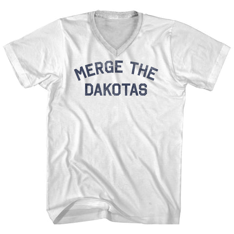 Product Story: Merge The Dakotas Adult Cotton V-neck T-shirtProduct Description: Merge The Dakotas Adult Cotton V-neck T-shirt Tri-Blend (Polyester, Rayon, Cotton) Buttery Smooth Soft Material Medium Weight Tee Soft Hand Print