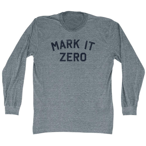 Product Story: Mark It Zero Adult Tri-Blend Long Sleeve T-shirtProduct Description: Mark It Zero Adult Tri-Blend Long Sleeve T-shirt Tri-Blend (Polyester, Rayon, Cotton) Buttery Smooth Soft Material Medium Weight Tee Soft Hand Print