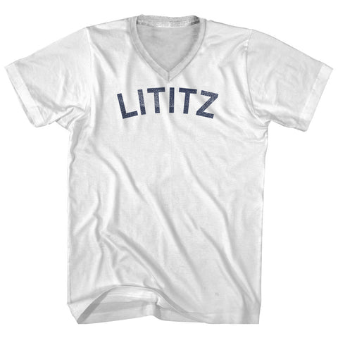 Product Story: Lititz Adult Cotton V-neck T-shirtProduct Description: Lititz Adult Cotton V-neck T-shirt Tri-Blend (Polyester, Rayon, Cotton) Buttery Smooth Soft Material Medium Weight Tee Soft Hand Print
