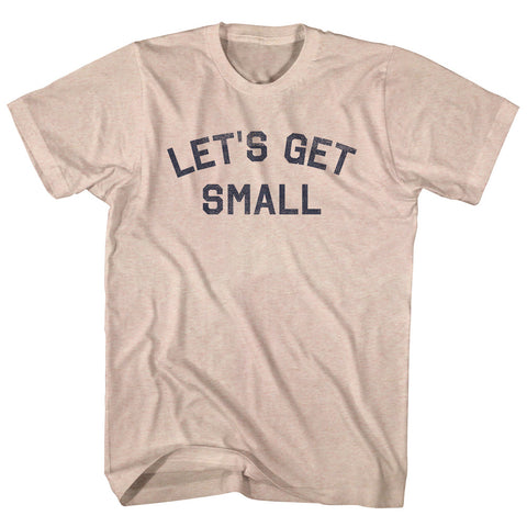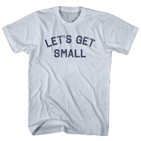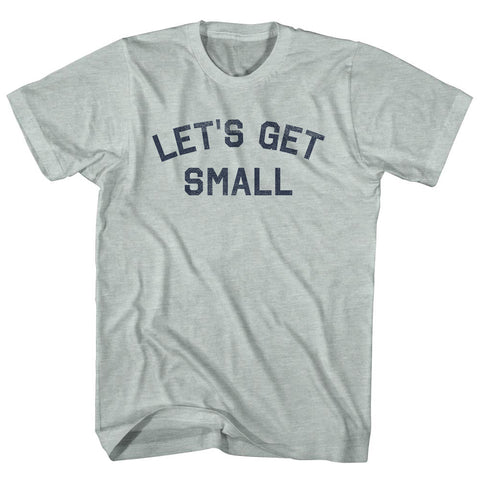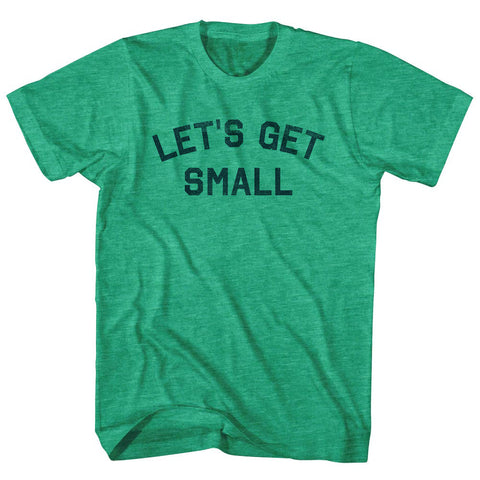 Product Story: Let's Get Small Adult Tri-Blend T-shirtProduct Description: Let's Get Small Adult Tri-Blend T-shirt Tri-Blend (Polyester, Rayon, Cotton) Buttery Smooth Soft Material Medium Weight Tee Soft Hand Print