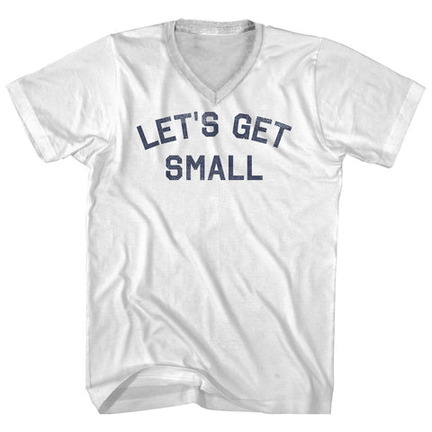 Product Story: Let's Get Small Adult Cotton V-neck T-shirtProduct Description: Let's Get Small Adult Cotton V-neck T-shirt Tri-Blend (Polyester, Rayon, Cotton) Buttery Smooth Soft Material Medium Weight Tee Soft Hand Print