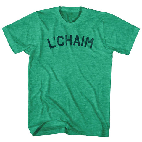 Product Story: Lchaim Adult Tri-Blend T-shirtProduct Description: Lchaim Adult Tri-Blend T-shirt Tri-Blend (Polyester, Rayon, Cotton) Buttery Smooth Soft Material Medium Weight Tee Soft Hand Print