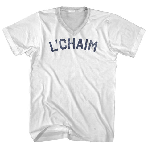 Product Story: Lchaim Adult Cotton V-neck T-shirtProduct Description: Lchaim Adult Cotton V-neck T-shirt Tri-Blend (Polyester, Rayon, Cotton) Buttery Smooth Soft Material Medium Weight Tee Soft Hand Print