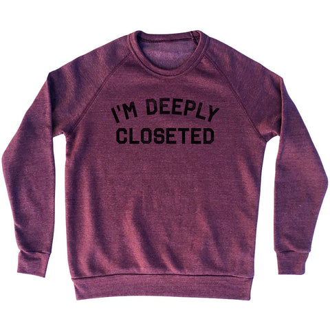 Product Story: I'm Deeply Closeted Adult Tri-Blend SweatshirtProduct Description: I'm Deeply Closeted Adult Tri-Blend Sweatshirt Tri-Blend (Polyester, Rayon, Cotton) Buttery Smooth Soft Material Medium Weight Tee Soft Hand Print