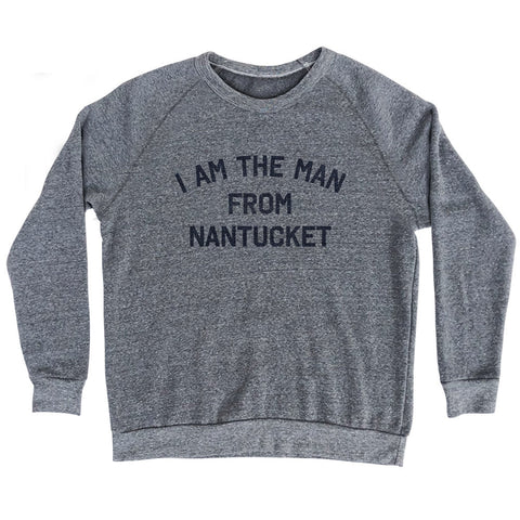 Product Story: I Am The Man From Nantucket Adult Tri-Blend SweatshirtProduct Description: I Am The Man From Nantucket Adult Tri-Blend Sweatshirt Tri-Blend (Polyester, Rayon, Cotton) Buttery Smooth Soft Material Medium Weight Tee Soft Hand Print