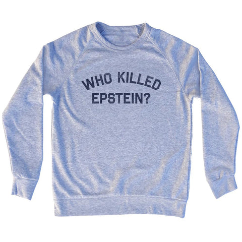 Product Story: Who Killed Epstein Adult Tri-Blend SweatshirtProduct Description: Who Killed Epstein Adult Tri-Blend Sweatshirt Tri-Blend (Polyester, Rayon, Cotton) Buttery Smooth Soft Material Medium Weight Tee Soft Hand Print