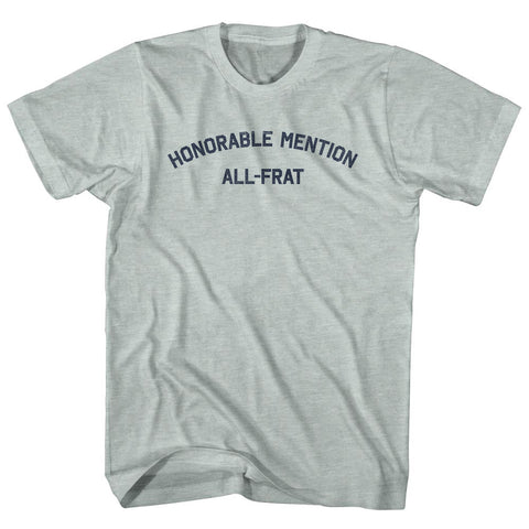 Product Story: Honorable Mention All-Frat Adult Tri-Blend T-shirtProduct Description: Honorable Mention All-Frat Adult Tri-Blend T-shirt Tri-Blend (Polyester, Rayon, Cotton) Buttery Smooth Soft Material Medium Weight Tee Soft Hand Print