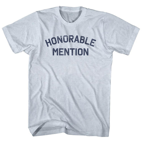 Product Story: Honorable Mention Adult Tri-Blend T-shirtProduct Description: Honorable Mention Adult Tri-Blend T-shirt Tri-Blend (Polyester, Rayon, Cotton) Buttery Smooth Soft Material Medium Weight Tee Soft Hand Print