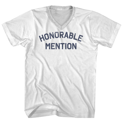 Product Story: Honorable Mention Adult Cotton V-neck T-shirtProduct Description: Honorable Mention Adult Cotton V-neck T-shirt Tri-Blend (Polyester, Rayon, Cotton) Buttery Smooth Soft Material Medium Weight Tee Soft Hand Print