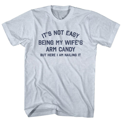 Product Story: It's Not Easy Being My Wife's Arm Candy Adult Tri-Blend T-shirtProduct Description: It's Not Easy Being My Wife's Arm Candy Adult Tri-Blend T-shirt Tri-Blend (Polyester, Rayon, Cotton) Buttery Smooth Soft Material