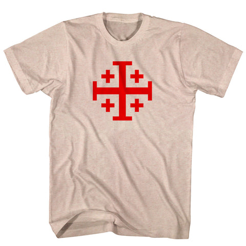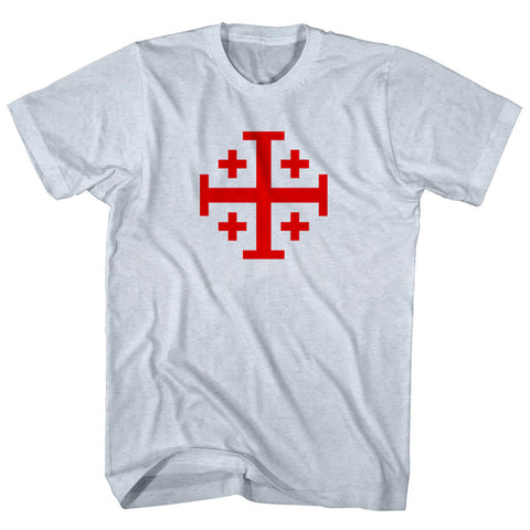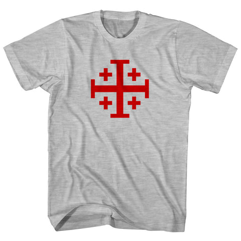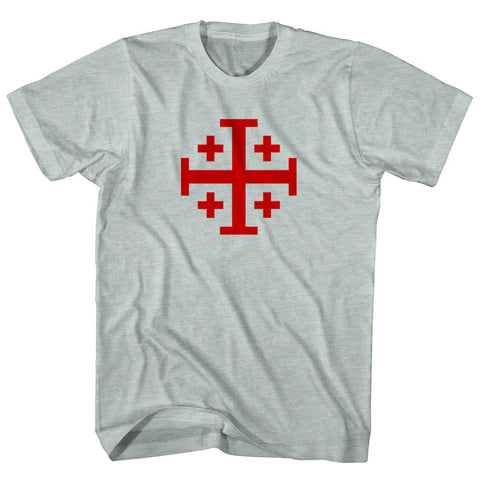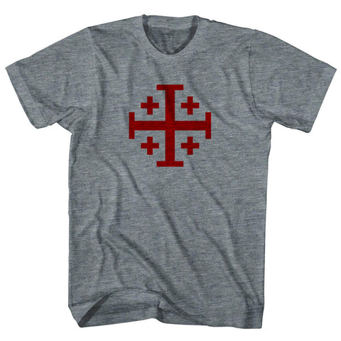 Product Story: Jerusalem Cross (Red Art) Adult Tri-Blend T-shirtProduct Description: Jerusalem Cross (Red Art) Adult Tri-Blend T-shirt Tri-Blend (Polyester, Rayon, Cotton) Buttery Smooth Soft Material