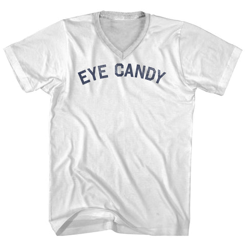 Product Story: Eye Candy Adult Cotton V-neck T-shirtProduct Description: Eye Candy Adult Cotton V-neck T-shirt Tri-Blend (Polyester, Rayon, Cotton) Buttery Smooth Soft Material Medium Weight Tee Soft Hand Print
