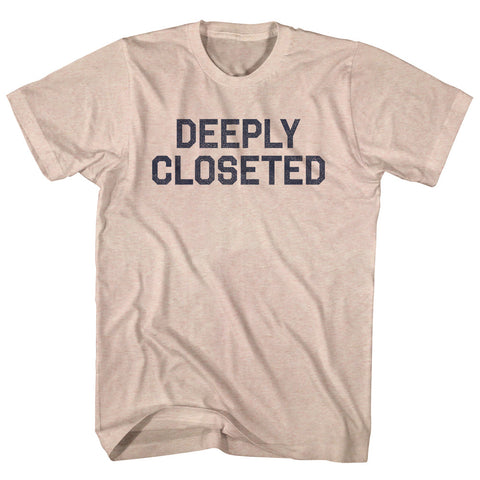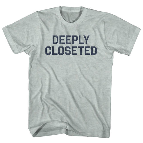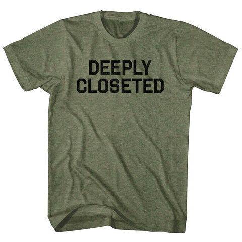 Product Story: Deeply Closeted Adult Tri-Blend T-shirtProduct Description: Deeply Closeted Adult Tri-Blend T-shirt Tri-Blend (Polyester, Rayon, Cotton) Buttery Smooth Soft Material Medium Weight Tee Soft Hand Print