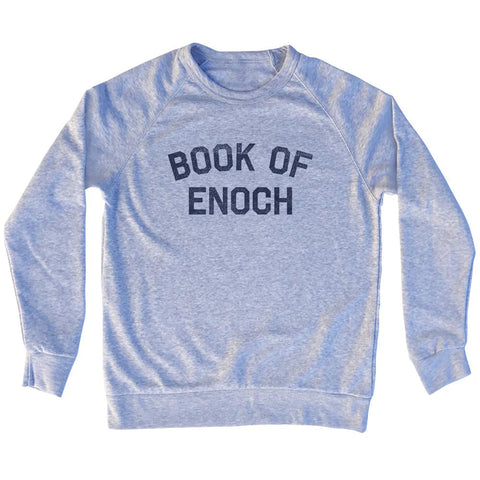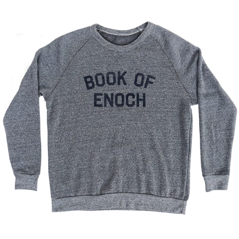Product Story: Book of Enoch Adult Tri-Blend SweatshirtProduct Description: Book of Enoch Adult Tri-Blend Sweatshirt Tri-Blend (Polyester, Rayon, Cotton) Buttery Smooth Soft Material Medium Weight Tee Soft Hand Print