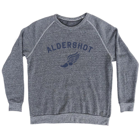Product Story: Aldershot Running Track Winged Foot Adult Tri-Blend SweatshirtProduct Description: Aldershot Running Track Winged Foot Adult Tri-Blend Sweatshirt Cotton Buttery Smooth Soft Material Medium Weight Tee Soft Hand Print