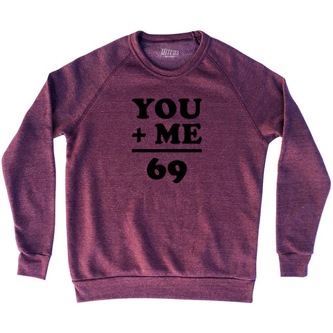 Product Story: 69 Math Equation Adult Tri-Blend SweatshirtProduct Description: 69 Math Equation Adult Tri-Blend Sweatshirt Tri-Blend (Polyester, Rayon, Cotton) Buttery Smooth Soft Material Medium Weight Tee Soft Hand Print