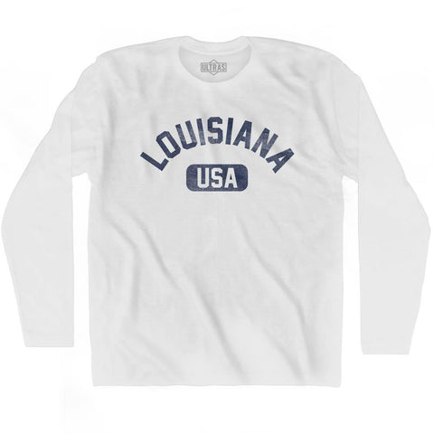 Product Story: Louisiana USA Adult Cotton Long Sleeve T-shirtProduct Description: Cotton Buttery Smooth Soft Material Premium T-shirt Medium Weight Tee Soft Hand Print