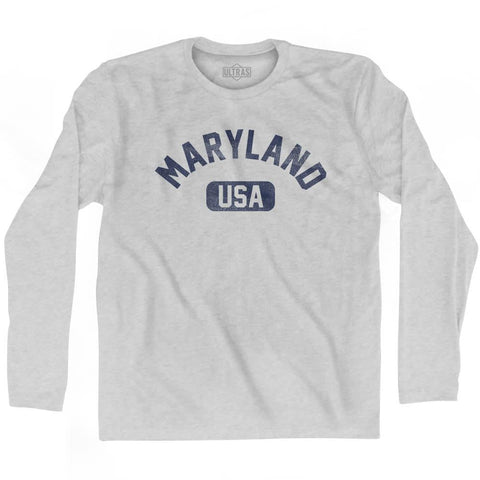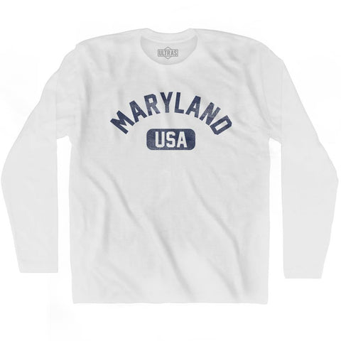 Product Story: Maryland USA Adult Cotton Long Sleeve T-shirtProduct Description: Cotton Buttery Smooth Soft Material Premium T-shirt Medium Weight Tee Soft Hand Print
