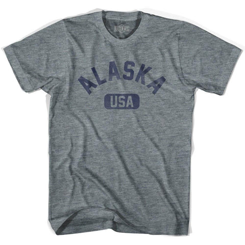Product Story: Alaska USA Adult Tri-Blend T-shirtProduct Description: Tri-Blend (Polyester, Rayon, Cotton) Buttery Smooth Soft Material Premium T-shirt Medium Weight Tee Soft Hand Print