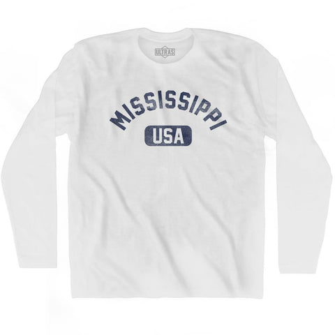 Product Story: Mississippi USA Adult Cotton Long Sleeve T-shirtProduct Description: Cotton Buttery Smooth Soft Material Premium T-shirt Medium Weight Tee Soft Hand Print