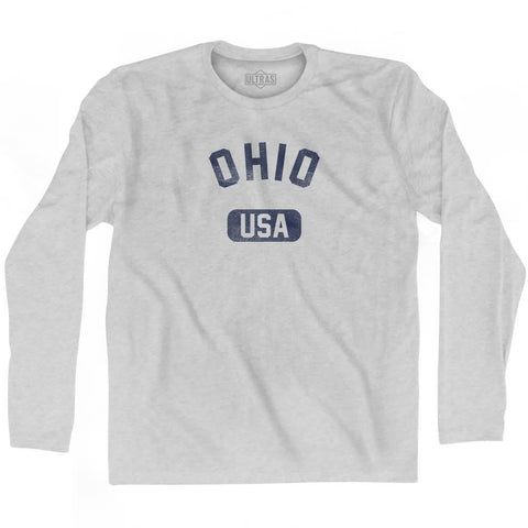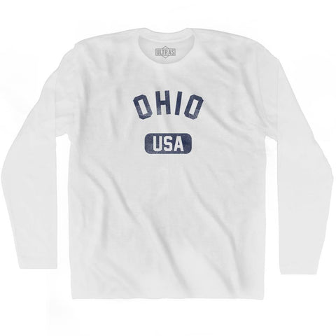 Product Story: Ohio USA Adult Cotton Long Sleeve T-shirtProduct Description: Cotton Buttery Smooth Soft Material Premium T-shirt Medium Weight Tee Soft Hand Print
