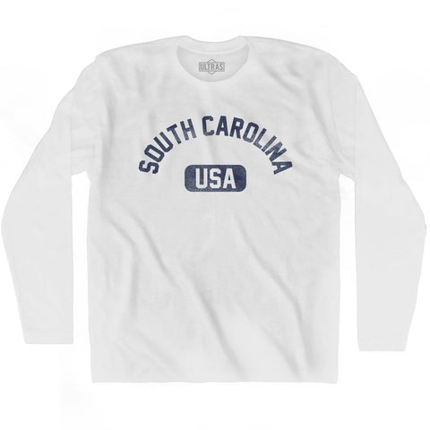 Product Story: South Carolina USA Adult Cotton Long Sleeve T-shirtProduct Description: Cotton Buttery Smooth Soft Material Premium T-shirt Medium Weight Tee Soft Hand Print