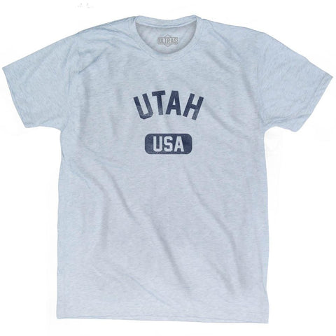 Product Story: Utah USA Adult Tri-Blend T-shirtProduct Description: Tri-Blend (Polyester, Rayon, Cotton) Buttery Smooth Soft Material Premium T-shirt Medium Weight Tee Soft Hand Print