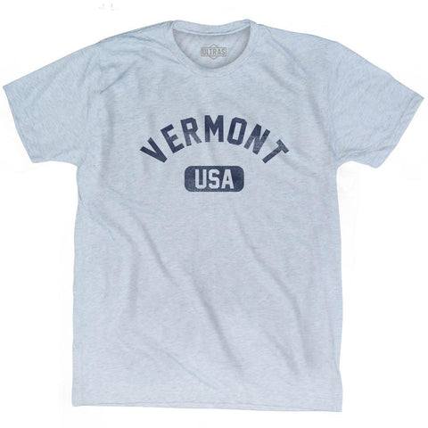Product Story: Vermont USA Adult Tri-Blend T-shirtProduct Description: Tri-Blend (Polyester, Rayon, Cotton) Buttery Smooth Soft Material Premium T-shirt Medium Weight Tee Soft Hand Print