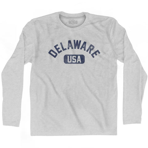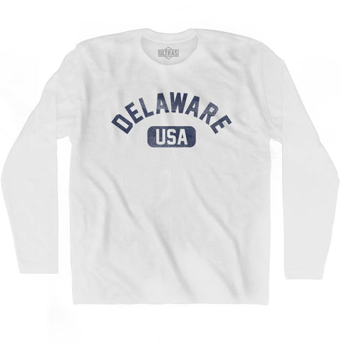 Product Story: Delaware USA Adult Cotton Long Sleeve T-shirtProduct Description: Cotton Buttery Smooth Soft Material Premium T-shirt Medium Weight Tee Soft Hand Print