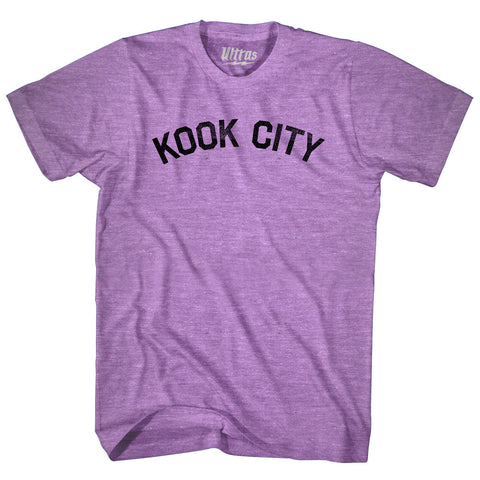 Product Story: Kook City Adult Tri-Blend T-shirtProduct Description: Kook City Adult Tri-Blend T-shirt Tri-Blend (Polyester, Rayon, Cotton) Buttery Smooth Soft Material Medium Weight Tee Soft Hand Print