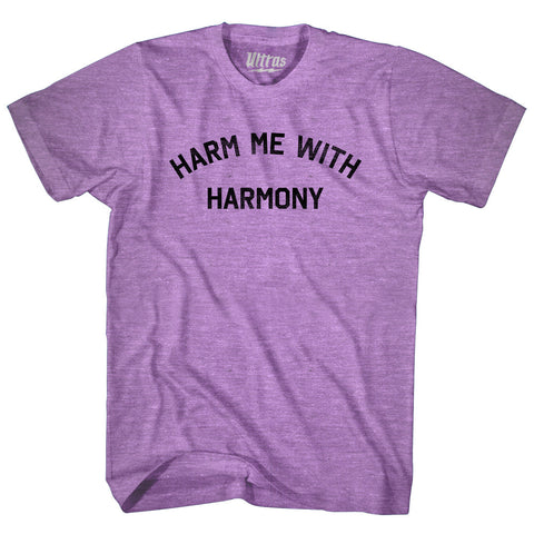 Product Story: Harm Me With Harmony Adult Tri-Blend T-shirtProduct Description: Harm Me With Harmony Adult Tri-Blend T-shirt Tri-Blend (Polyester, Rayon, Cotton) Buttery Smooth Soft Material Medium Weight Tee Soft Hand Print