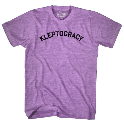 Product Story: kleptocracy Adult Tri-Blend T-shirtProduct Description: kleptocracy Adult Tri-Blend T-shirt Tri-Blend (Polyester, Rayon, Cotton) Buttery Smooth Soft Material Medium Weight Tee Soft Hand Print