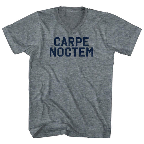 Product Story: Carpe Noctem Tri-Blend V-neck Womens Junior Cut T-shirtProduct Description: Carpe Noctem Tri-Blend V-neck Womens Junior Cut T-shirt Tri-Blend (Polyester, Rayon, Cotton) Buttery Smooth Soft Material Medium Weight Tee Soft Hand Print