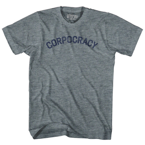 Product Story: Corpocracy Womens Tri-Blend Junior Cut T-ShirtProduct Description: Corpocracy Womens Tri-Blend Junior Cut T-Shirt Tri-Blend (Polyester, Rayon, Cotton) Buttery Smooth Soft Material Medium Weight Tee Soft Hand Print
