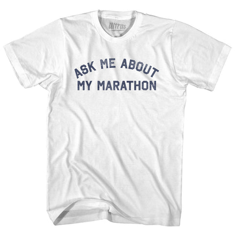 Product Story: Ask Me About My Marathon Womens Cotton Junior Cut T-ShirtProduct Description: Ask Me About My Marathon Womens Cotton Junior Cut T-Shirt Cotton (90% Cotton &10% Polyester) Buttery Smooth Soft Material Medium Weight Tee Soft Hand Print