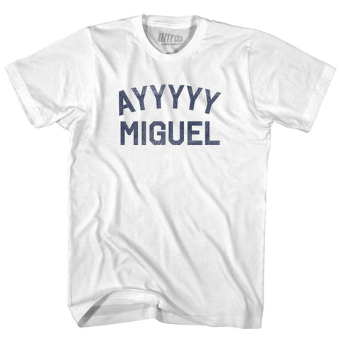 Product Story: Ayyyyy Miguel Womens Cotton Junior Cut T-ShirtProduct Description: Ayyyyy Miguel Womens Cotton Junior Cut T-Shirt Cotton Buttery Smooth Soft Material Medium Weight Tee Soft Hand Print