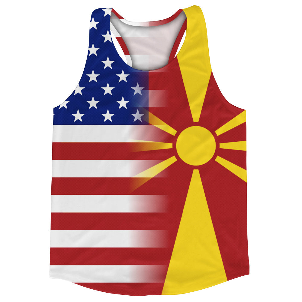 • American Flag And North Macedonia Flag Combination Running Racerback Singlet Track Tank Top